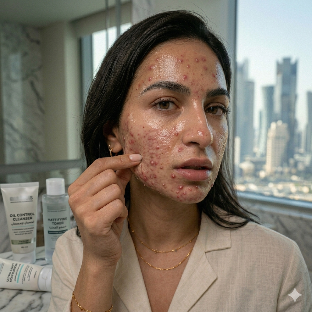 Even oily skin in Qatar is often dehydrated due to AC exposure.