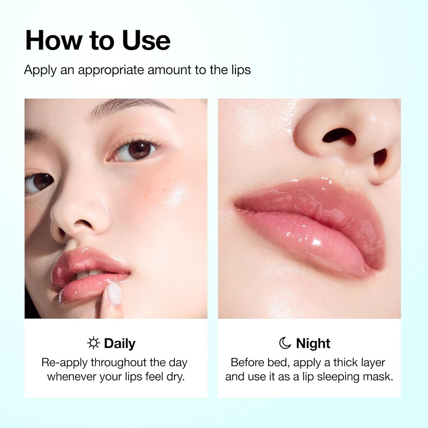Apply a small amount directly to clean, dry lips.
