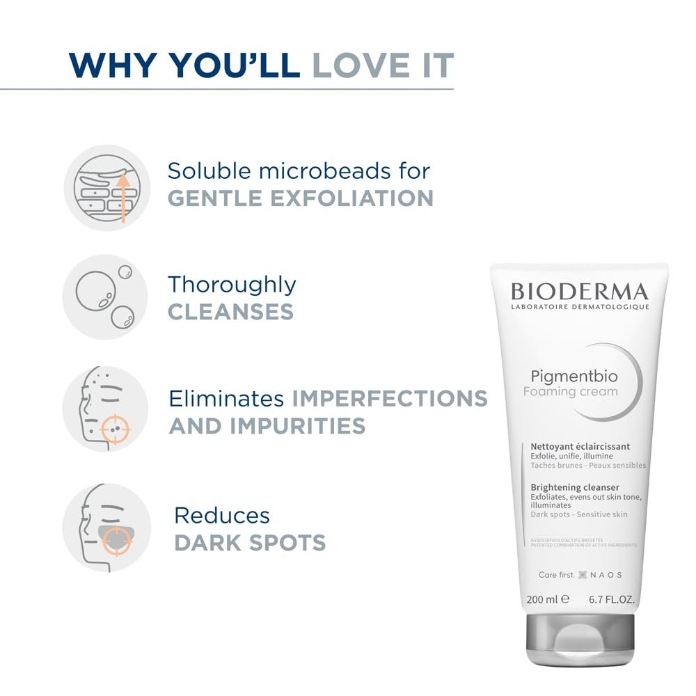 Bioderma Pigmentbio Foaming Cream is a gentle yet effective cleanser designed to brighten dull, uneven skin while removing impurities and excess sebum. Formulated with the Pigmentbio complex, this foaming cream helps prevent the appearance of dark spots, evens out skin tone, and restores radiance. Its mild, soap-free formula protects the skin barrier while leaving the complexion smooth, refreshed, and glowing.