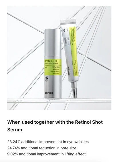 Combat early signs of aging with the CELIMAX Retinol Shot Tightening Serum, now available on www.street55qatar.com. This dermatologist-approved serum features 0.1% pure retinol, 9-peptide complex, and skin-repairing ingredients that work together to visibly reduce fine lines, wrinkles, enlarged pores, and sagging skin, all while improving skin texture and elasticity.