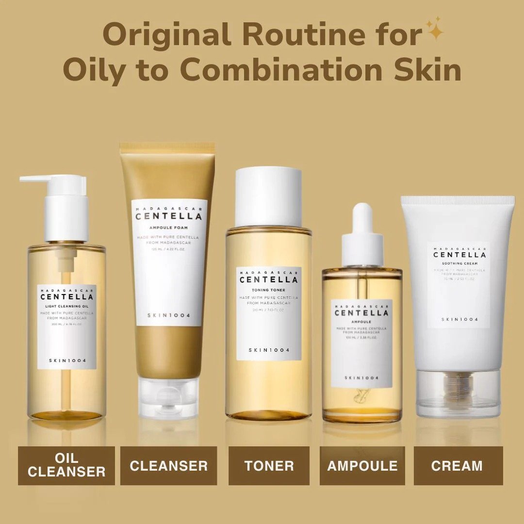 Experience the healing power of Madagascar’s purest Centella Asiatica with the Skin1004 Centella Complete Calming Set – a comprehensive 5-step skincare combo specially formulated to soothe sensitive skin, control breakouts, and restore your skin barrier. Perfect for those struggling with redness, acne, or irritation, this set delivers a gentle yet effective skincare ritual using Skin1004’s signature ingredient: Centella Asiatica Extract sourced from Madagascar.