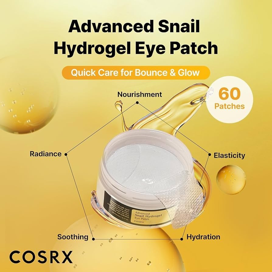 COSRX Advanced Snail Hydrogel Eye Patch is an intensive under-eye treatment designed to hydrate, firm, and visibly improve tired-looking eyes. Formulated with a high concentration of Snail Secretion Filtrate, these hydrogel patches deeply nourish delicate eye skin, helping to reduce the appearance of fine lines, dryness, and dullness. The cooling hydrogel texture adheres perfectly to the skin, delivering active ingredients efficiently while soothing and refreshing the eye area for a smoother, brighter look.